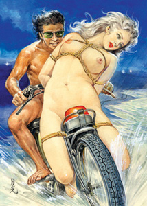 | くっきりとした二重瞼に長い睫毛、意志の強そうな唇。数々のSM雑誌やゲイ雑誌に華麗な美女や美少年を描き続けた林月光氏の展覧会が中野タコシェにて開催されます。氏の石原豪人としての活躍はあまりにも有名ですが、なんと意外なことにエロティックな作品を描くときに使われたペンネーム林月光名義の作品のみを集めた展示は今回が初めてとなります。 石原豪人氏が林月光名義でSM関係の作品を描くようになったのは昭和40年代。数々の巨匠や名絵師が活躍したSM黄金時代にあって、ひときわ艶やかな色香漂う美女を描き、月光氏独特の豊かな官能世界を築き上げました。団鬼六氏の名作に更なる深みを与え今なお人々に鮮烈な印象を残す「夕顔夫人(SMキング昭和48年1月号〜昭和49年5月号)」や「無残花物語(別冊SMファン昭和50年1月号〜昭和51年6月号)」の挿絵を筆頭に、伏見和美氏・芳野眉美氏・由紀かほる氏・安芸蒼太郎氏・千草忠夫氏といった錚々たる作家の挿絵を担当された他、妖艶華麗な口絵作品で、その圧倒的な画力とイマジネーションを見せつけました。 「ダビデこそ美の極致(SMキング昭和48年11月号「キングかわら版 若き青年画家 林月光氏の巻」より)」といわれた林月光氏は、美しい男性を描くことにも情熱を燃やし、創成期のゲイ雑誌の代表である「さぶ」では、同時期に活躍された三島剛氏と並ぶ看板画家として目次絵や数々の小説挿絵を精力的に発表されました。増刊号の巻頭カラーポスター(NICE GUYシリーズなど)や、読者からのリアルな体験告白を月光氏ならではのドラマチックな脚色で華麗に描いた「月光仮面劇場(最初期は歌謡ロマンシリーズ、後に月光天狗劇場など)」は、今なお新旧のファンから絶大なる支持をうける名作です。 今回の展覧会は、さぶ・JUNE・SMスピリッツ・SMマニア・SM秘小説・SMファン・SMキング・S&Mスナイパー・SMクラブなどに掲載された林月光作品が一堂に会する大変貴重な機会です。多くの人々の熱い思いが結晶したタコシェ渾身の展覧会に是非足をお運びいただき、華麗な月光世界を堪能していただきたいと思います。 この展示に合わせ、タコシェではオリジナルのカタログ『月光秘宝館』が発売されます。カタログには「さぶ」やSM各誌に発表された林月光名義の作品と、担当編集者、ゲイエロティックアートの巨匠にして研究家でもある田亀源五郎氏の談話などが収録されております。 林月光氏の活躍されていた当時の印刷技術や、月光氏自身がこだわった掲載時の画質を大切にして、丁寧に愛情こめて作られました。ファンの方々の感涙を誘う大変素敵なカタログです。この機会に是非お求めいただき、いつまでも宝物のように大切にしていただきたいと思います。A5判44P(カラー28Pモノクロ16P)・850円(税込)。 また、会期中の5月11日には高円寺の円盤にてトークイベント「月光夜話」が開催されます。展示にはないイラストの映像を見ながら、ゲストから石原豪人・林月光作品の魅力を伺うとのこと。ファンの方はどうぞお楽しみに! 「タコシェpresents 月光夜話」 終了しました。 会場:高円寺・円盤(★) 期日:2005年5月11日(水) 19:00open 19:30start 出演予定:赤田祐一氏・竹熊健太郎氏・田亀源五郎氏